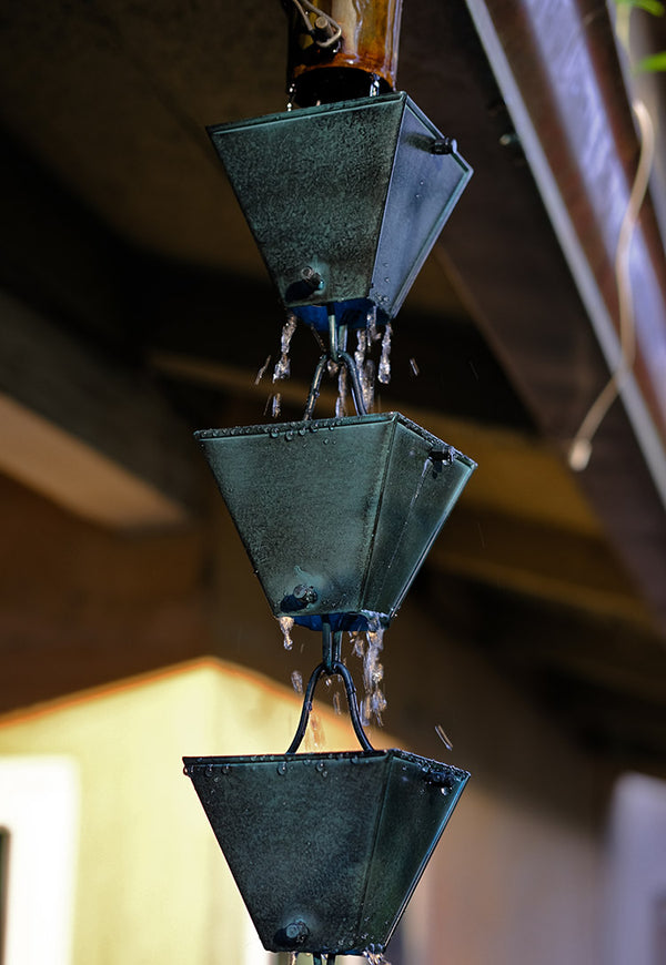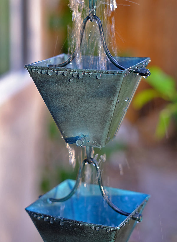 Medium Square Cups Patina Rain Chain #3121-M-PAT
