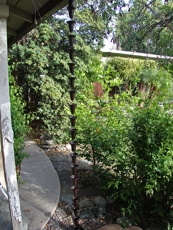 Our patented aluminum flared cup design -- in color! These cups are powder coated bronze to match or accent your home decor. Lightweight and strong, this chain will last for many years.