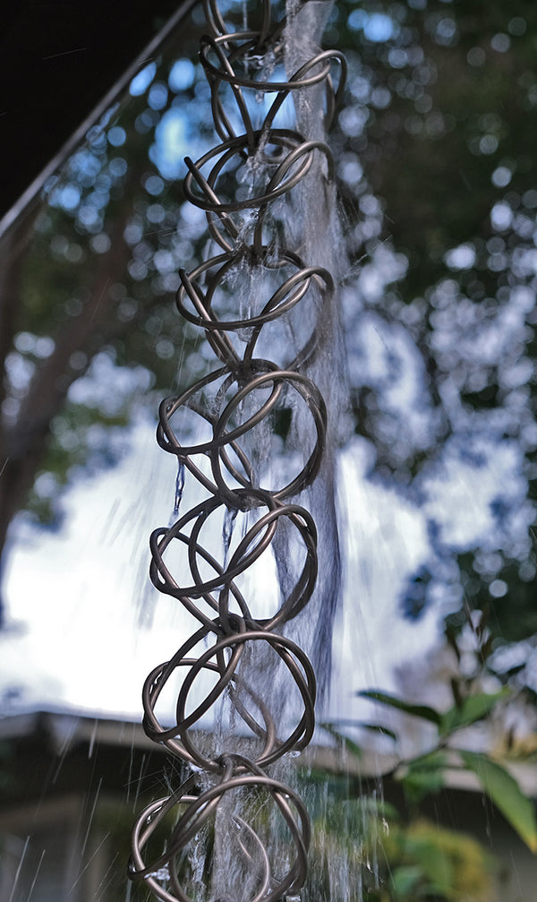 Replace your gutter downspout and add this decorative stainless steel rain chain to the gutter on your home. Beautiful water feature for when it rains. Intersecting circles guiding the water to the ground from your gutter are an eye catcher!