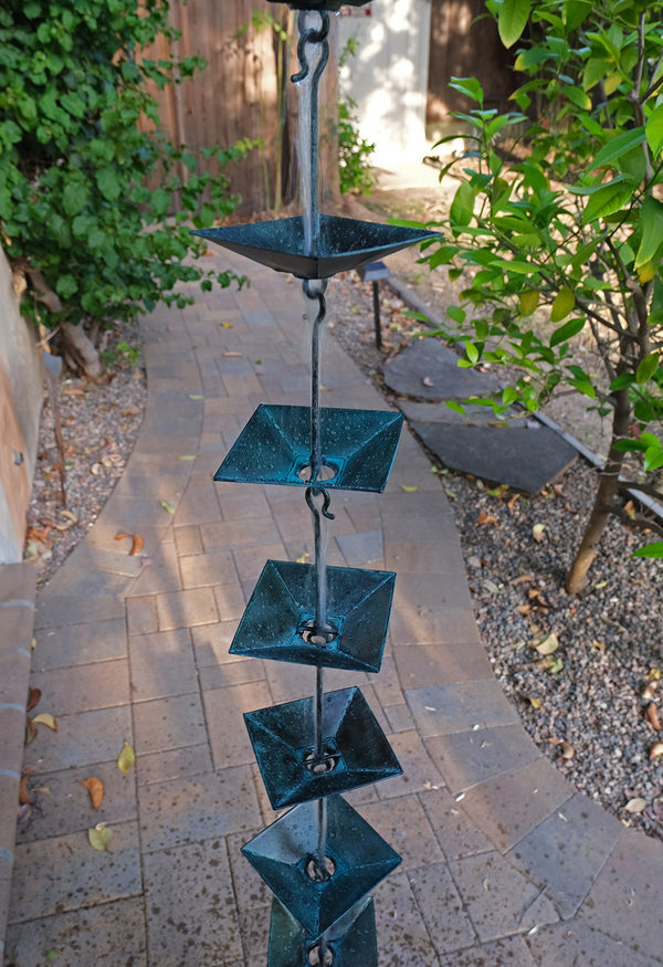 The Pagoda Cups are made in high grade steel for strength and longevity, with a folded lip at the top for even more stiffness, with a patina color finish added for natural beauty. The water streams through the middle hole and handles a fair amount of water.