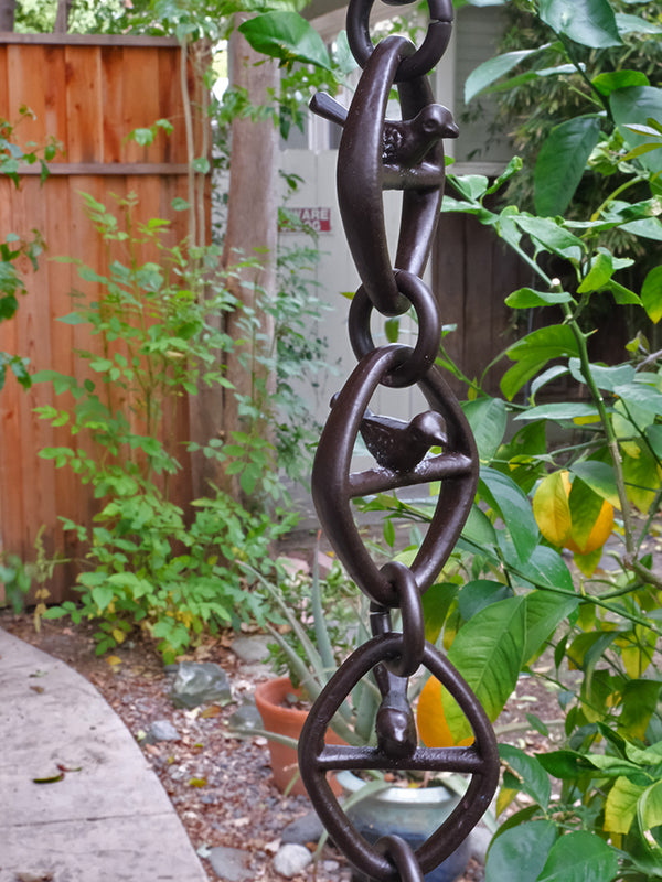 The chain is hand crafted in aluminum, then powder coated bronze.