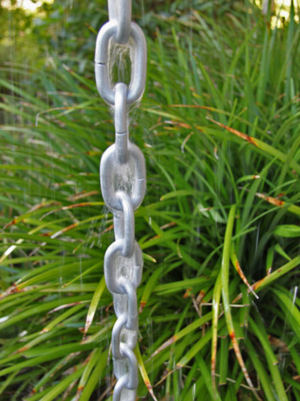 A thick, strong link chain made of thick, pure aluminum! Lightweight and stiff, this inexpensive chain will add a designer look to your home's gutter system. Medium grey/silver color.