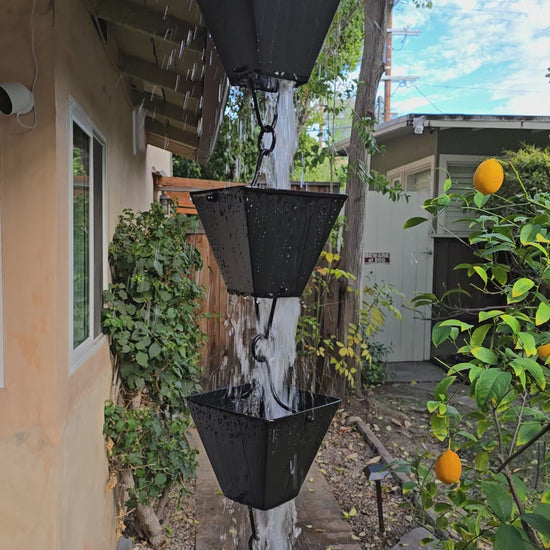 One of the larger cups we've ever made! A larger version of our Square Cups line of rain chains.